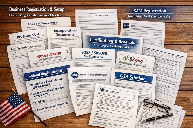 We handle your setup, registrations, and certifications so you can grow.