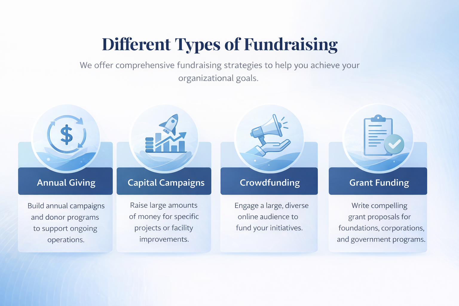 We design and implement strategic fundraising systems that increase revenue, strengthen relationships, and expand opportunities.