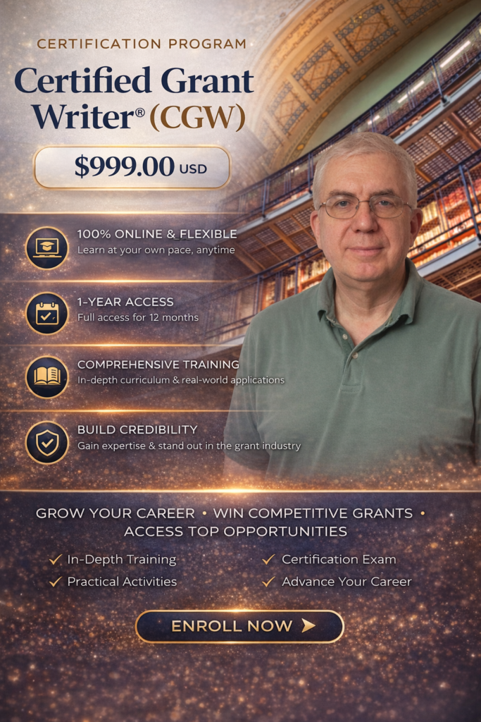 The CGW® credential demonstrates to employers and clients that you are a professional in the field of preparing grant applications and proposals.
